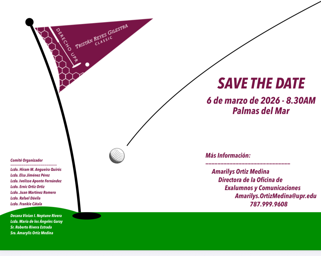 Ven y forma parte del Torneo de Golf más prestigioso de la profesión jurídica en Puerto Rico. Con su participación ayuda a la Escuela de Derecho a fortalecer sus programas, otorgar becas y mejorar las facilidades físicas.